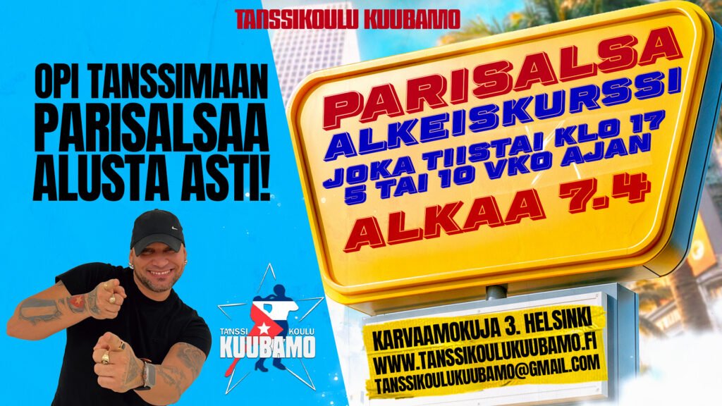 Paikka: Tanssikoulu Kuubamo, Karvaamokuja 3, Helsinki.